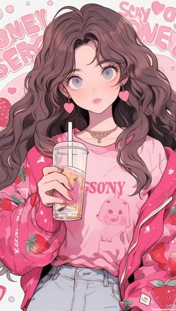 دانلود تصویر زمینه دخترانه فانتزی، طرح کاراکتر دختر کارتونی برای والپیپر گوشی تلفن همراه.عکس انیمه