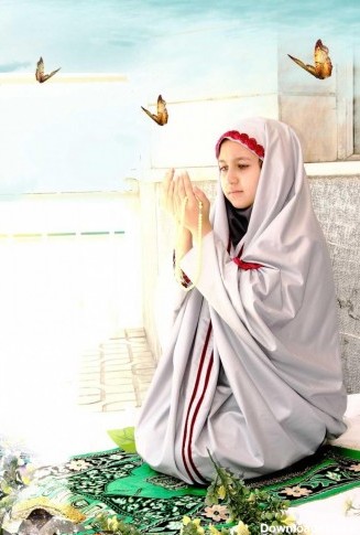 طرح لایه باز کارت تبریک جشن تکلیف همانطور که در تصویر پیش نمایش مشاهده می کنید در طرح از وکتور دختر بچه با حجاب در حال نماز خواندن استفاده شده ا