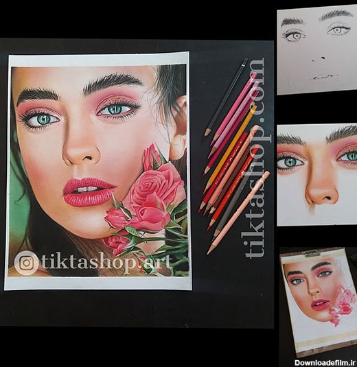 سفارش طراحی چهره از روی عکس با تکنیک مداد رنگی - سفارش نقاشی چهره - هزینه طراحی چهره با مداد رنگی - سفارش آنلاین نقاشی چهره - مداد رنگی