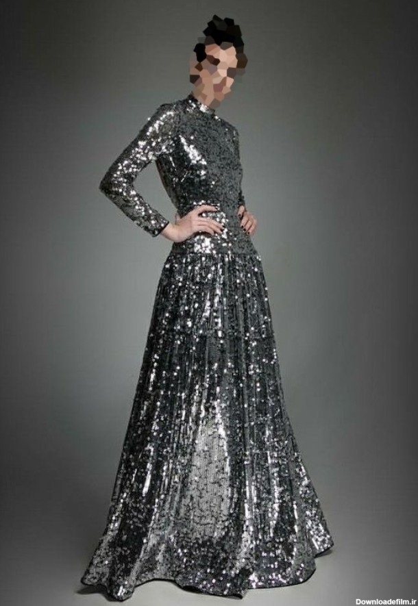 عکس مدل لباس مجلسی با پارچه پولکی