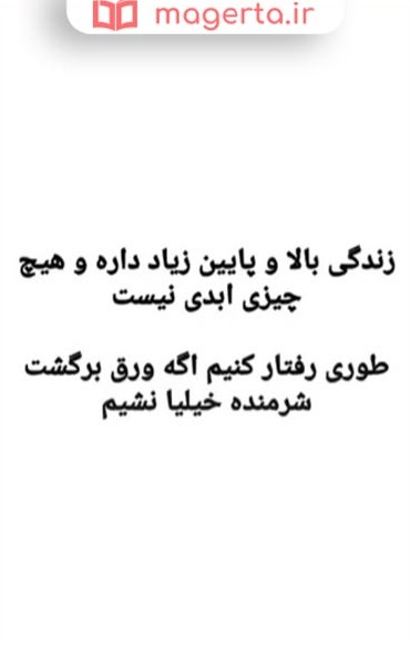 "ﺯﻧﺪﮔﯽ ﯾﮏ ﺑﺎﺯﯼ ﺩﺭﺩ ﺁﻭﺭ ﺍﺳﺖﺯﻧﺪﮔﯽ ﯾﮏ ﺍﻭﻝ ﺑﯽ ﺁﺧﺮ ﺍﺳﺖﺯﻧﺪﮔﯽ ﮐﺮﺩﯾﻢ ﺍﻣﺎ ﺑﺎﺧﺘﯿﻢﮐﺎﺥ ﺧﻮﺩ ﺭﺍ ﺭﻭﯼ ﺩﺭﯾﺎ ﺳﺎﺧﺘﯿﻢﻟﻤﺲ ﺑﺎﯾﺪ ﮐﺮﺩ ﺍﯾﻦ ﺍﻧﺪﻭﻩ ﺭﺍﺑﺮ ﮐﻤﺮ ﺑﺎﯾﺪ ﮐﺸﯿﺪ ﺍﯾﻦ ﮐﻮﻩ ﺭﺍﺯﻧﺪﮔﯽ ﺭﺍ ﺑﺎﻫﻤﯿﻦ ﻏﻤﻬﺎ ﺧﻮﺵ ﺍﺳﺖﺑﺎﻫﻤﯿﻦ ﺑﯿﺶ ﻭ ﻫﻤﯿﻦ ﮐﻤﻬﺎ ﺧﻮﺵ ﺍﺳﺖﺯﻧﺪﮔﯽ ﺭﺍ ﺧﻮﺏ ﺑﺎﯾﺪ آزمودﺍﻫﻞ ﺻﺒﺮﻭ ﻏﺼﻪ ﻭ ﺍﻧﺪﻭﻩ ﺑﻮﺩ"