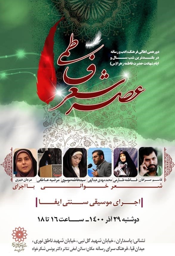 همزمان با ایام فاطمیه و در آستانه شب یلدا عصر شعر «فاطمی» در فرهنگسرای رسانه برگزار می شود.