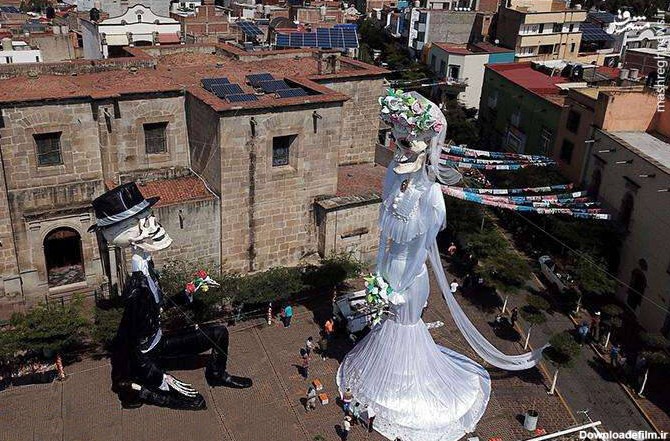 در تصویر زیر ساخت « لا کالاورا کاترینا» در لباس عروس به عنوان نماد روز مردگان در مکزیک به ارتفاع ۲۰ متر همراه با دامادش را مشاهده می کنید.