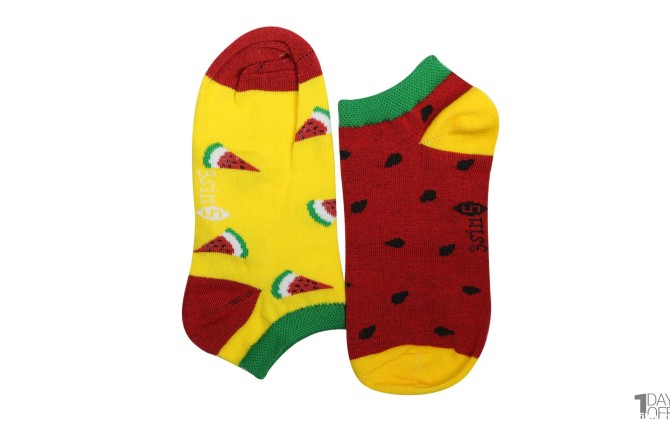 جوراب بچهگانه فانتزی لنگه به لنگه مچ کوتاه یلدا طرح هندوانه شامل یک جوراب قرمز با طرح دانه هندوانه و یک جوراب زرد با طرح تکههای هندوانه میباشد. جنس این جوراب نخ و پلیاستر میباشد.