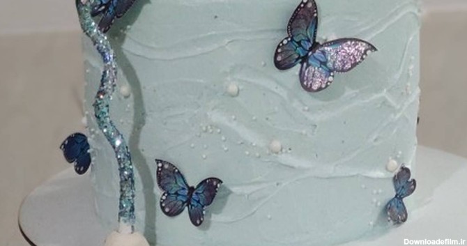 عکسو داخل سلفون پیچیده و روی کیک گذاشتم و با قیف خامه کشی کردم پروانه رو کیک رو هم با شکلات اب شده درست کردم روی کاغذ روغنی چرب شده با شکلات اب شده پروانه کشیدم و گذاشتم سفت شد