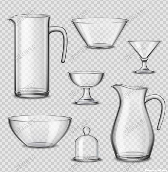 7 وکتور ظروف شیشه ای طراحی واقعی - وکتور پارچ لیوان بستنی خوری کاسه وکتور ظرفهای شیشه ای وکتور پارچ شیشه ای وکتور لیوان شیشه ای وکتور بستنی خوری شیشه ای وکتور