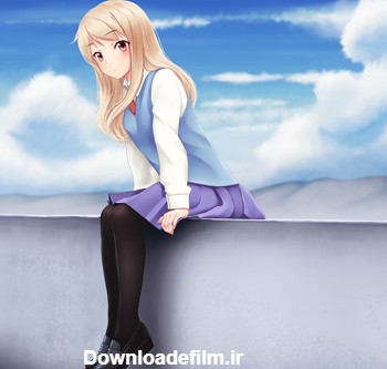عکس دختر کارتونی ژاپنی ، عکس دختر کارتونی ژاپنی زیبا با موهای بلند طلایی و جوراب شلواری در منظره آسمان آبی، خوش گل ترین و جدیدترین عکس ها و پوسترهای کارتونی انیمه ژاپنی از دختر نوجوان و زیبا، پوستر انیمه جدید ژاپنی دخترانه