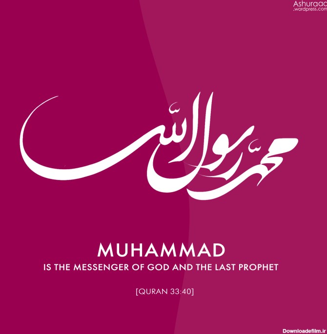 تصاویر انگلیسی در دو رنگ متفاوت شامل اسم حضرت محمد صلی الله علیه و آله همراه با بخشی از یک آیه قرآن درباره ایشان