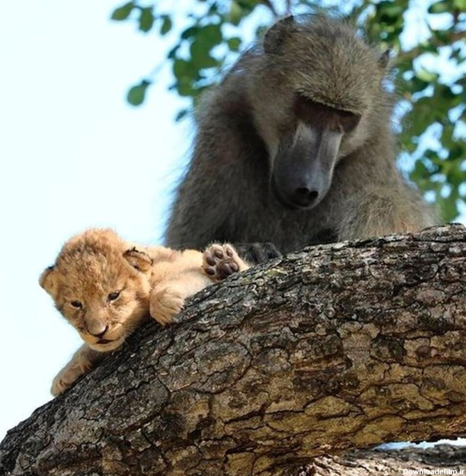 نگهداری یک میمون دم کوتاه (بابون) از یک توله شیر در پارک ملی کروگر آفریقای جنوبی منظره ای بی نظیر خلق کرده است. کورت شولتز، اپراتور سافاری گفت: "مراقبت هایی که از این توله شیر انجام می شود همان مراقبت هایی است که یک بابون از بچه های خود انجام می دهد.