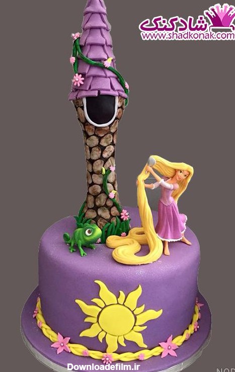 کیک چند طبقه زیبای جشن تولد دخترونه با تم راپونزل (گیسو کمند)
