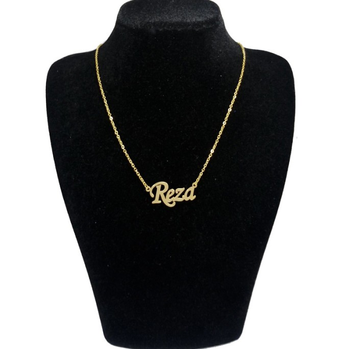 پلاک اسم طلا انگلیسی "رضا" از محصولات گروه پلاک طلا اسم انگلیسی (تک اسم)