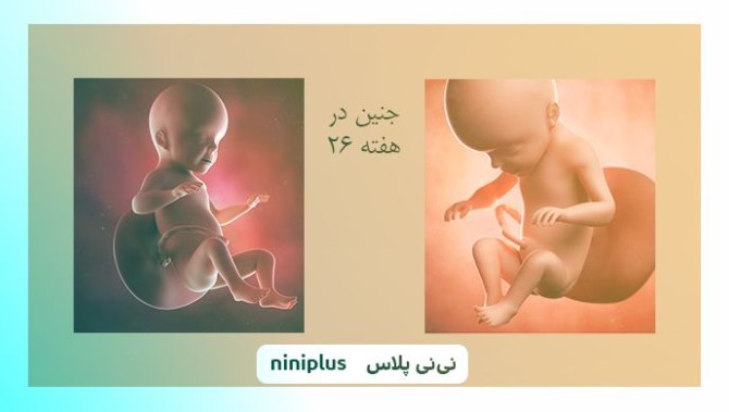 در عکس جنین در هفته بیست و ششم بارداری میبینید که در این ماه جنین می تواند خمیازه بکشد، لبخند بزند و تسلط بیشتری بر روی حرکات خود دارد.