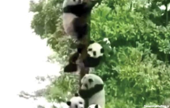 تصاویری جالب از بالا رفتن جالب گله پانداها از تنه درخت منتشر شده است.