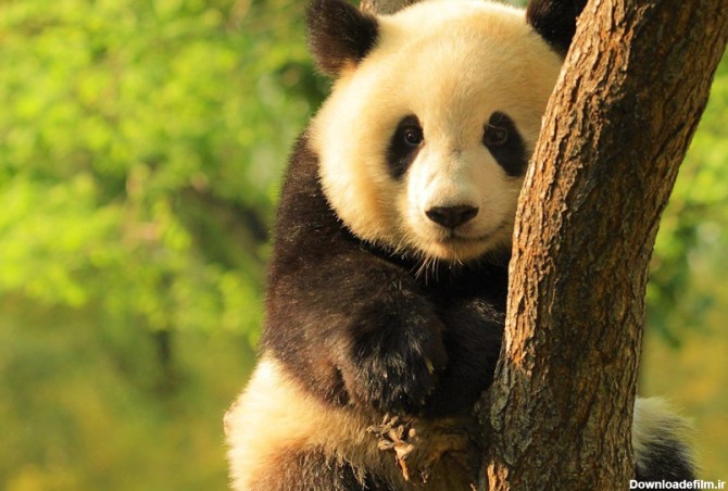 یک خرس پاندا بالای تنه درخت، ژستهای جذاب و زیبایی برای عکاسان گرفت!