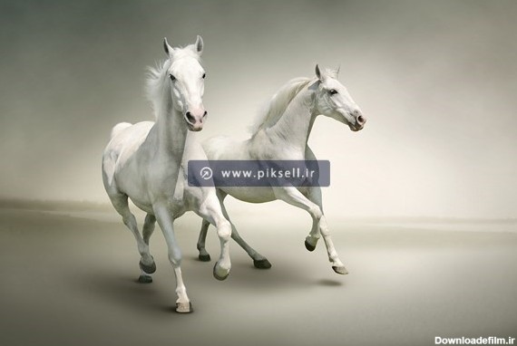 دانلود عکس با کیفیت از یورتمه رفتن اسب های سفید ارائه شده با پیوند jpg