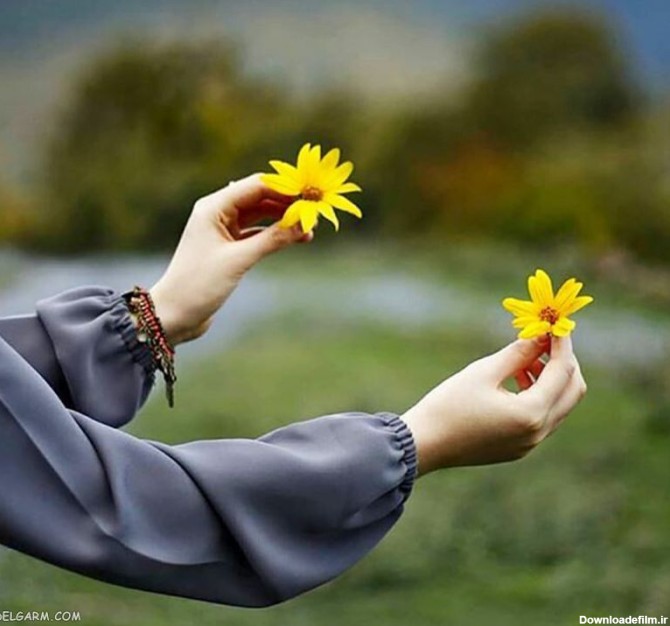 عکس دست دختر پسر با گل