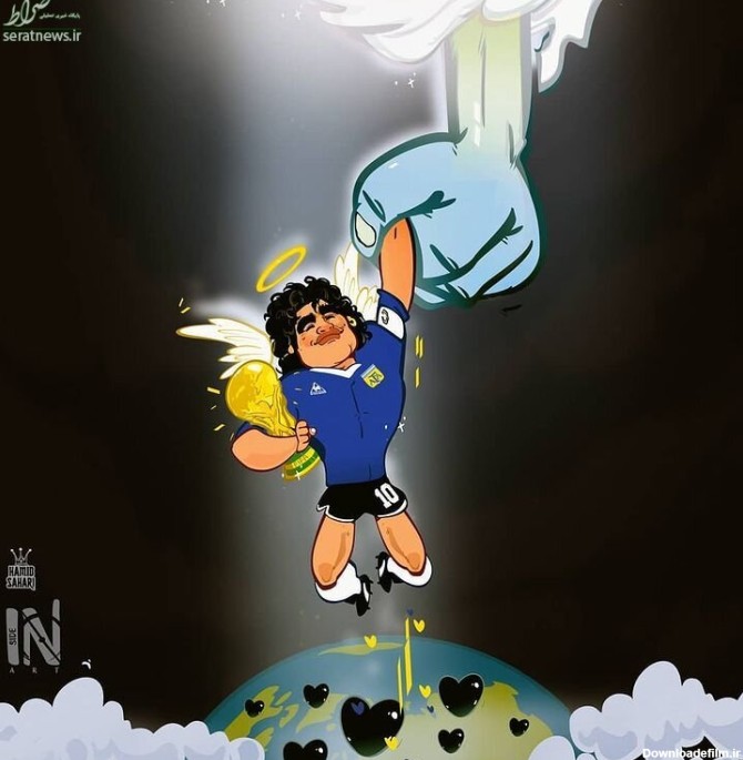 درگذشت مارادونا که در سال ۱۹۸۲ جنجالیترین گل دنیای فوتبال را با دست به انگلیس زد و به «دست خدا» معروف شد، سوژه انتشار کارتونی از حمید سحری شد.