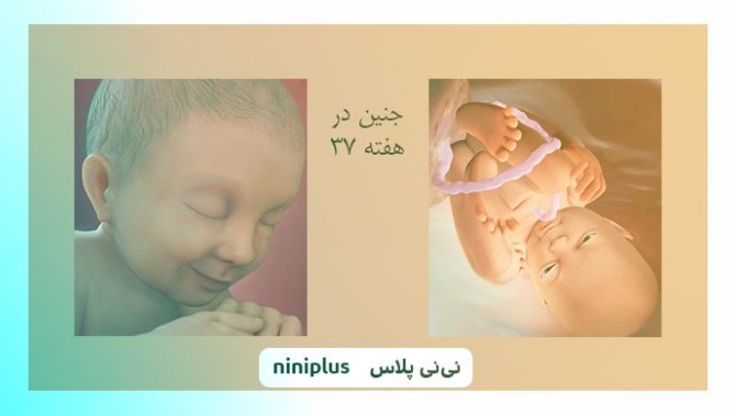 در این متن عکس جنین در هفته سی و هفتم بارداری که توسط سونوگرافی سه بعدی گرفته شده است، صورت، دست ها، پاها، زانوها و ... کاملا مشخص است.