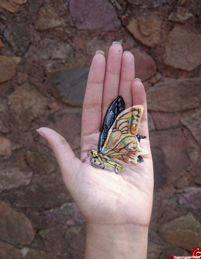یک هنرمند با استفاده از خلاقیت های جالب به ترسیم نقاشی سه بعدی در کف دست پرداخته است.
