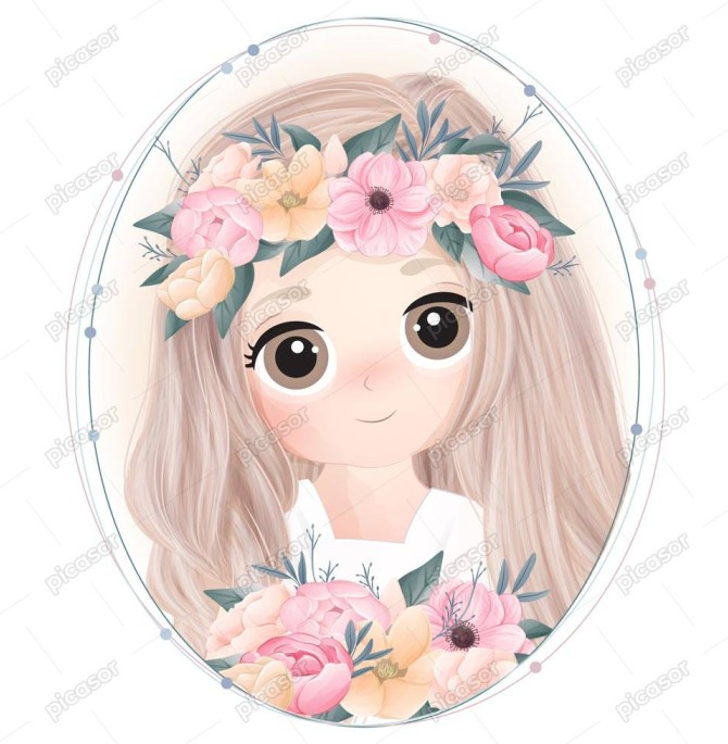 وکتور دختربچه با تاج گل نقاشی آبرنگی دختر کوچک در قاب عکس دختر کوچک زیبا عکس دختربچه و دسته گل کوچک زیبا تصویر دختر کوچک زیبا تصویر دختربچه کوچک و تاج گل