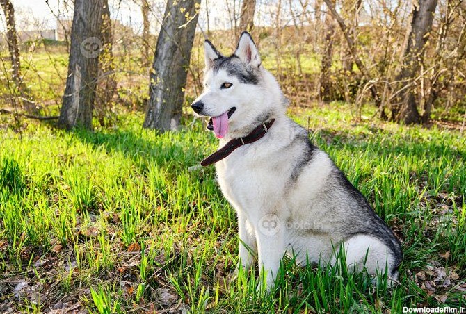 دانلود عکس سگ هاسکی اصیل با زبان آویزان روی چمن نشسته است اوپیک مرجع دانلود وکتور و عکس و طرح کاغذ دیواری و طرح تابلو