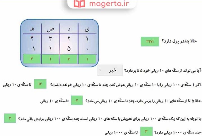 جواب فعالیت صفحه ۱۰۹ و کاردرکلاس صفحه ۱۱۰ و تمرین صفحه ۱۱۱ ریاضی کلاس سوم ابتدایی ☄️ پاسخ گام به گام صفحه 109 و 110 و 111 ریاضی سوم تفریق در جدول ارزش مکانی
