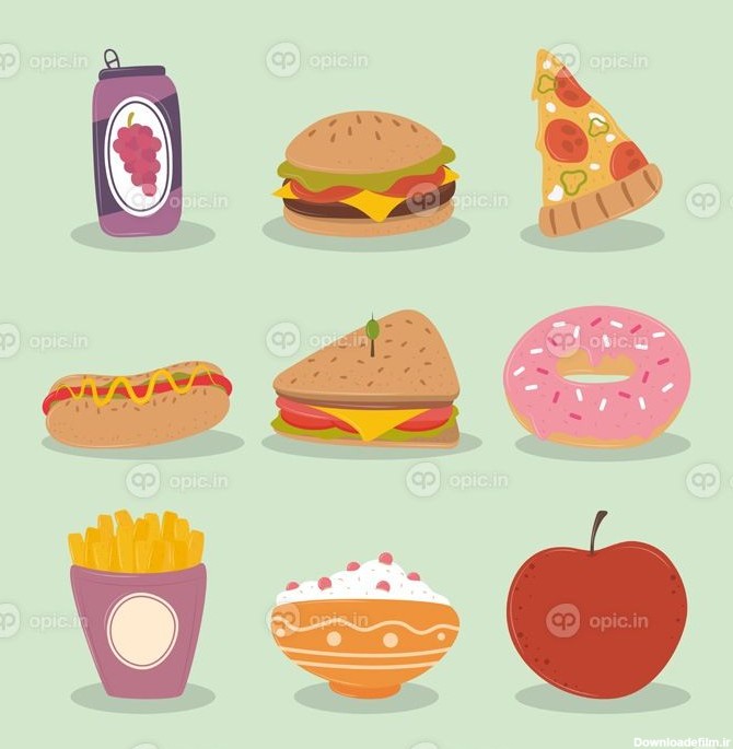 دانلود مجموعه مجموعه ای از غذای ناسالم فست فود طراحی کارتونی به سبک وکتور تصویر (2) . با ژیوانو به سادگی طراحی کن!