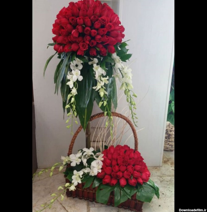 سبد گل زیبا با سفارش عکس انواع تصاویر مدل شامل طراحی تزیین گلهای رز زیبا رز قرمز سفید نمونه طبیعی مصنوعی برای تولد نامزدی خواستگاری جدید س