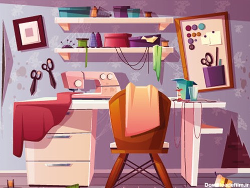وکتور طرح گرافیکی مادر خانه در حال خیاطی با چرخ خیاطی . قابل ویرایش در نرم افزار ادوب ایلستریتور و قابل اجرا در کلیه نرم افزارهای گرافیکی
