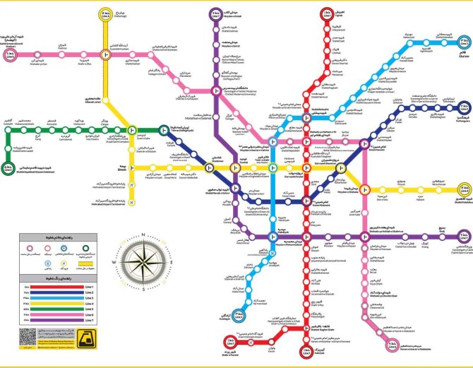 برای دور از مسافت راه و ترافیک با نگاهی به نقشه متروی شهر تهران به عنوان بزرگترین سیستم در خاورمیانه و با وجود خطوط متعدد و دهها ایستگاه از جمله ایستگاههای فرودگاه بینالمللی امام خمینی و بازار بزرگ تهران می توانید به سهولت تردد کنید و سفرهای درونشهری را انجام دهید.