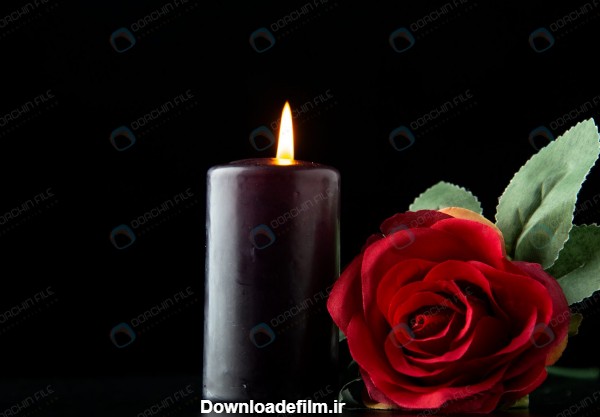 تصویر شمع مشکی با گل رز عکس استوک شمع و گل رز در پس زمینه مشکی