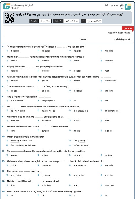 دانلود نمونه سوال - جزوه و درسنامه رایگان زبان انگلیسی (2) یازدهم علوم ریاضی دوره دوم متوسطه- نظری