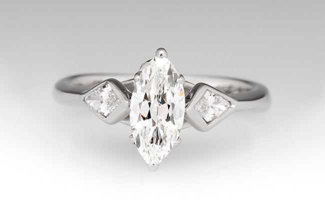 حلقه و پشت حلقه جواهر زنانه از الماس خوش رنگ با تراش گرد با بالاترین کیفیت و براق با طلای 18 عیار سفید هدیه مناسب برای بانوان متولد فروردین و اردیبهشت ماه خرید آنلاین در جواهری حسن زاده