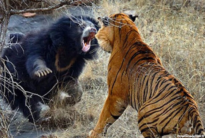 ویدئویی به تازگی منتشر شده است که مبارزه جانانه یک خرس سیاه را با یک ببر به تصویر میکشد. منبع: خبرگزاری دانشجو