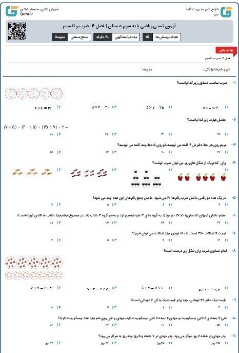 دانلود محتوای آموزشی - ریاضی سوم دبستان