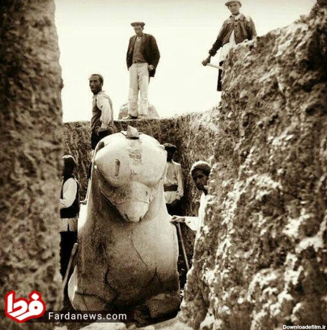 تصویر زیر کشف شیر دال هخامنشی در تخت جمشید در سال ۱۳۱۰ را نشان می دهد.