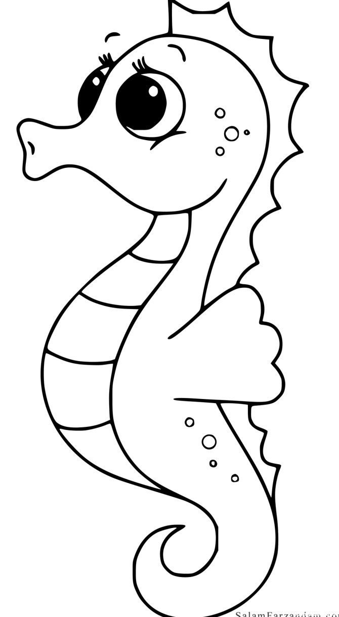 نقاشی اسب دریایی برای رنگ آمیزی کودکان ، رنگ آمیزی اسب دریایی ، طرح خام و بدون رنگ اسب دریایی