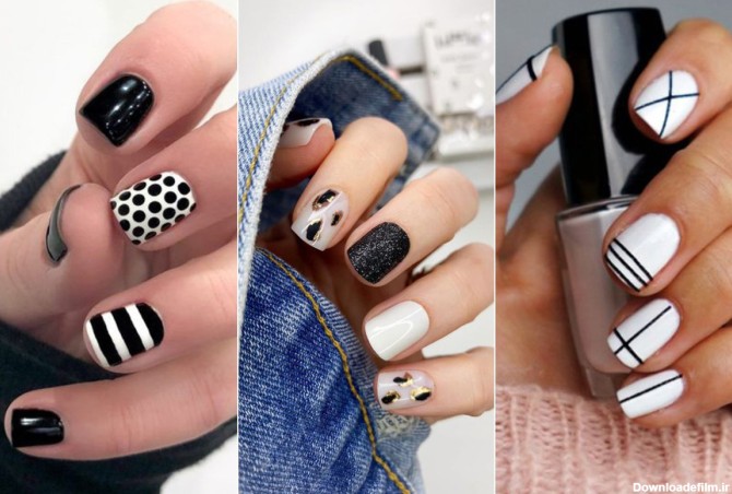 مدل ناخن سیاه سفید دخترانه جدید ۱۴۰۲ ⭕️ طراحی ناخن سفید مشکی اسپرت و خفن 2023 ؛ عکس مدل مشکی سفید دخترانه 1402 ؛ طرح ناخن سفید سیاه ۲۰۲۳