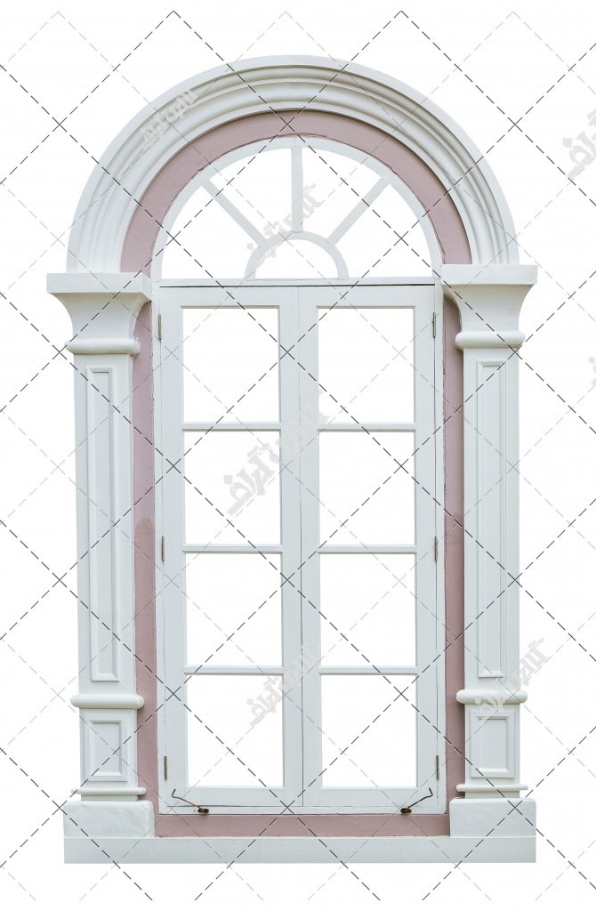 تصویر پنجره هلالیپنجره سفید چوبی هلالی ، پنجره در پس زمینه سفید
