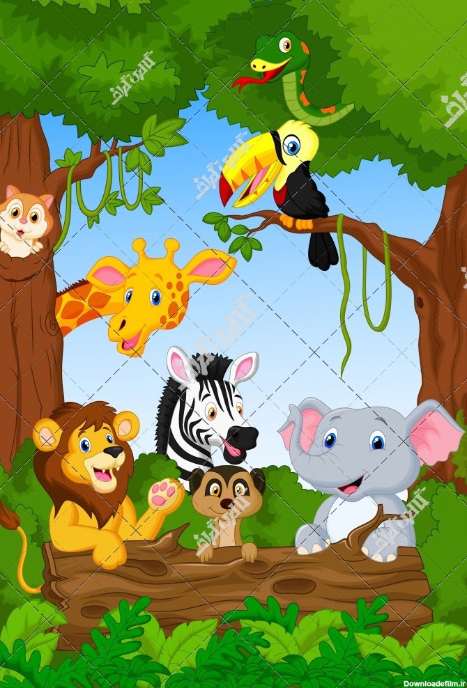 عکس کارتونی حیوانات جنگل جمع دوستانهپوستر اتاق کودک طرح طرح جنگل کارتونی ، فیل ، زرافه ، میمون ، شیر ، حیوانات جنگل