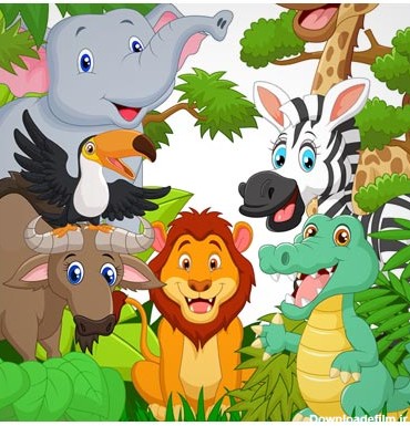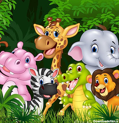 دانلود رایگان عکس با کیفیت حیوانات جنگل پس زمینه کارتونی حیوانات شیر ، اسب آبی ، زرافه ، سوسمار ، میمون ، گورخر ، Download free photo-quality background jungle animals cartoon animals lion, hippo, giraffe, crocodile, monkey, zebra,