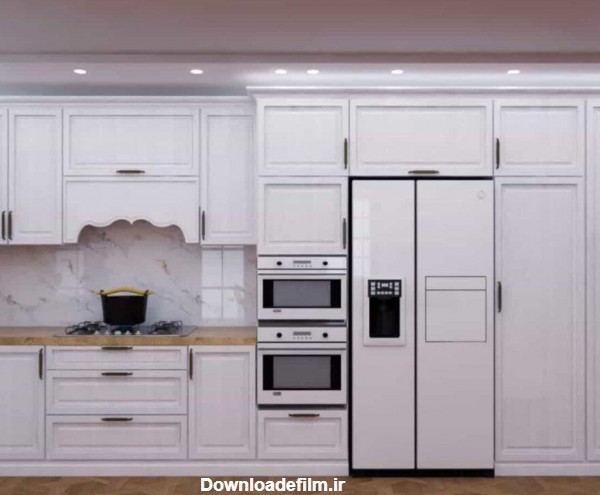 طراحی کابینت ممبران رنگ سفید به همراه میز نهارخوری و شاه نشین با کیفیت فوق العاده به همراه لیست قیمت طراحی کابینت و نمونه کارهای عالی