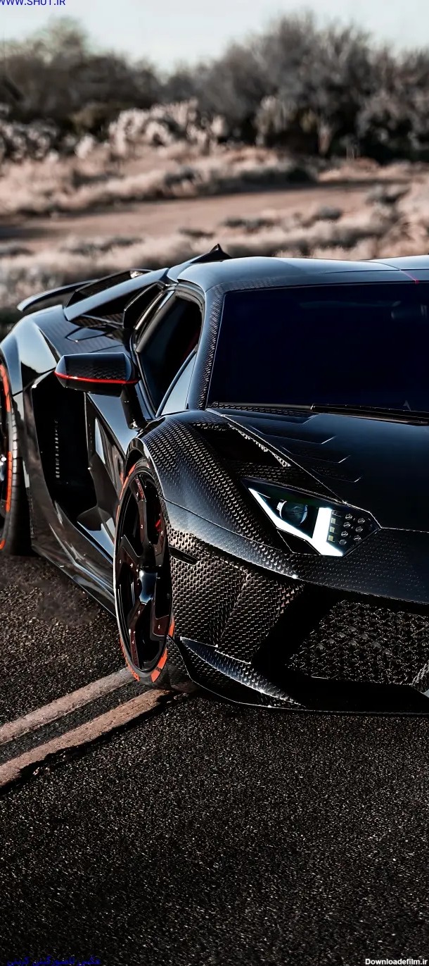 دانلود تصویر لامبورگینی مشکی کنار جاده | تیک طرح مرجع گرافیک ایران