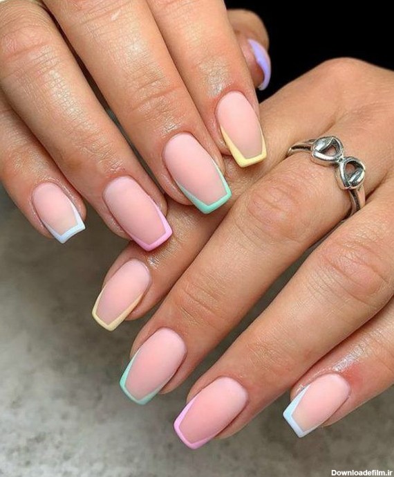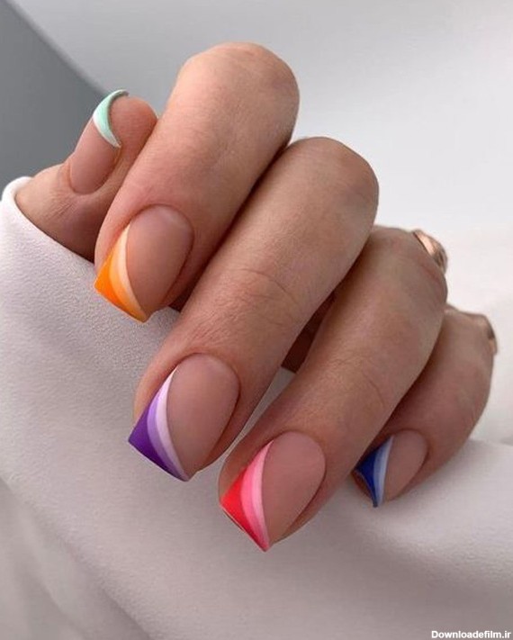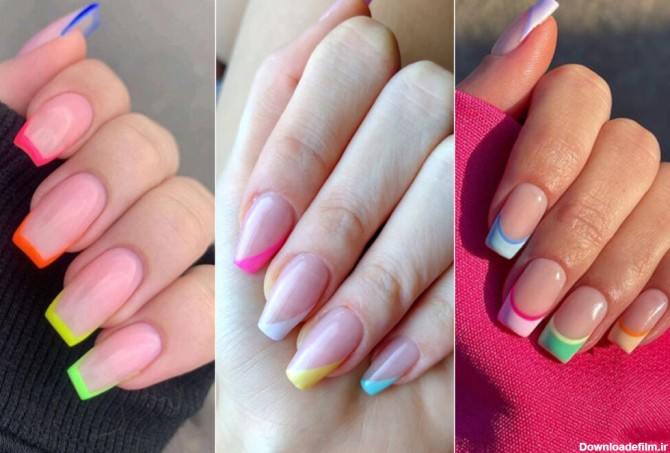 مدل ناخن فرنچ رنگی دخترانه جدید ۱۴۰۲ ❤️ جدیدترین مدل ناخن فرنچ دخترانه رنگی کوتاه شیک 2023 ؛ بهترین طرح ناخن های فرنچ رنگی تابستانی زنانه