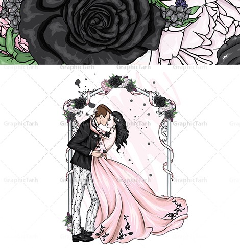 وکتور آبرنگی عروس و داماد | گرافیک طرح | وکتور نقاشی آبرنگی عروس و داماد فانتزی کارت عروسی و ازدواج | وکتور زیبای لباس عروس eps
