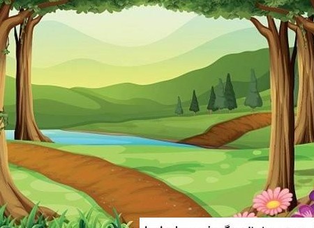دانلود رایگان فایل وکتوری طبیعت زیبا و منظره روستایی با خورشید بصورت لایه باز کارتونی و انیمیشنی