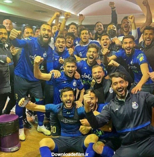 عکسی از شادی بازیکنان استقلال در رختکن پس از پیروزی برابر گلگهر در هفته بیست و یکم