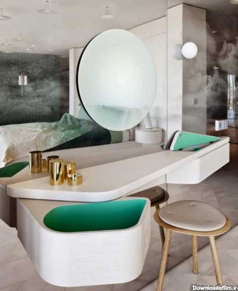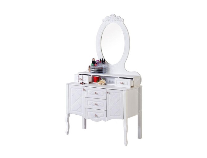 این میزآرایش دارای کشوهای زیادی میباشد و بخشی از میزآرایش برای استفاده لوازم دکوری و آرایشی است. کشوهایی که برای این میزآرایش طراحی شده چهار عدد بوده