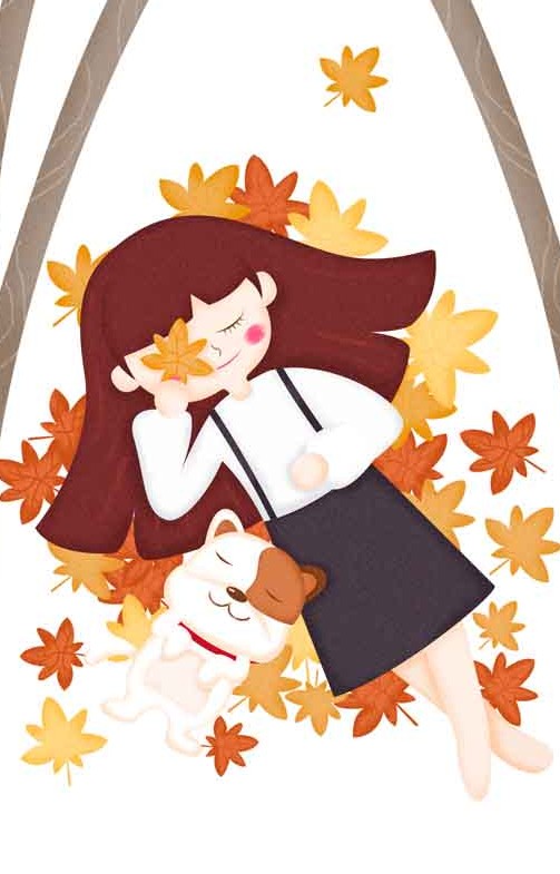 طرح کلیپ آرت دختر خوابیده روی برگ