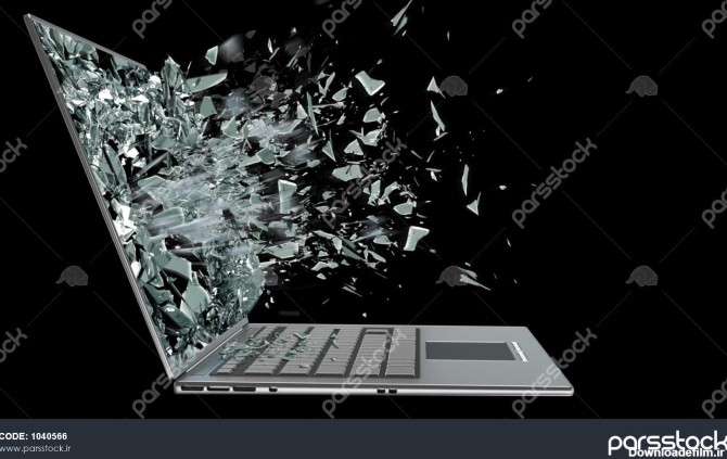 لپ تاپ با صفحه نمایش شکسته جدا شده بر روی پس زمینه سیاه و سفید - بزرگترین مرجع خرید و فروش عکس و طرح لایه باز با کیفیت بالا در ایران در پارس استاک.